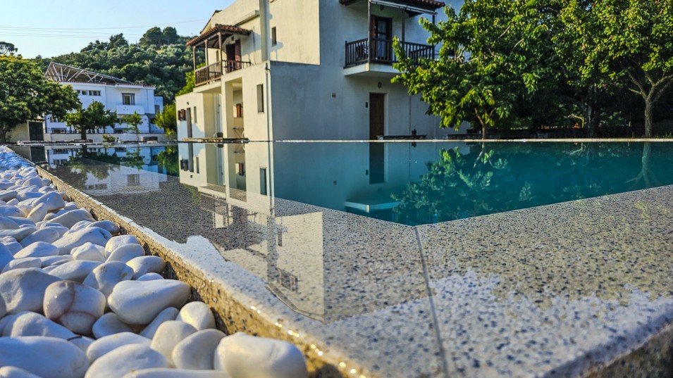 A Floréa Skopelos nyugodt kültéri környezetet kínál, amelyet a pihenésre, csendes reggelekre és hosszú, természetközeli nyári délutánokra terveztek. A kert és a medencés terület a hagyományos görög táj varázsát ötvözi a modern kényelemmel — tökéletes környezet párok, családok és mindazok számára, akik egy nyugodt szigeti elvonulást keresnek.